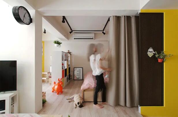 許多租屋處也會使用布簾作為隔斷,因為方便好清洗,也很容易依照租客需求來更換位置。