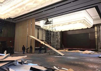 那么這種隔斷和我們通常看到的酒店內(nèi)裝的導(dǎo)軌式隔斷有什么區(qū)別呢?通常我們看到的那種隔斷為100型活動(dòng)隔斷,隔斷厚度為100mm,這種隔斷的最高可達(dá)12m。