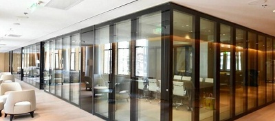 帶框玻璃活動隔斷,主要是用在會議室等地方。這些地方,既要達到一定的區域分割,又要在視覺上達到通透性。關鍵的話它又能夠像固定的玻璃隔斷一樣可以起到隔音的作用。通常情況下,帶框玻璃活動隔斷內部還可以裝上手動或電動的百葉,這種情況下的話,特別適合在辦公會議等地方使用。它可以靈活的滿足人們在辦公的情況下,對于視覺和聲音上的隱私需求,又能照顧到辦公區域分割的靈活處理。單個公司自己辦公場合通常采用此種形式。